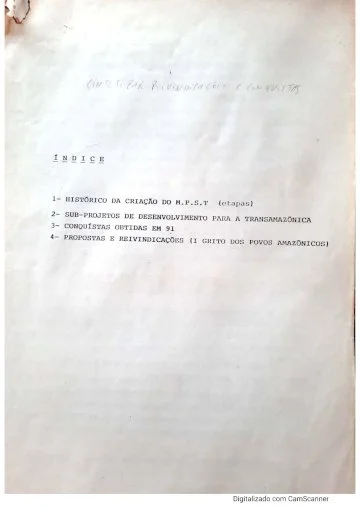 I Projeto de Desenvolvimento Alternativo para a região da Transamazonica 1991
