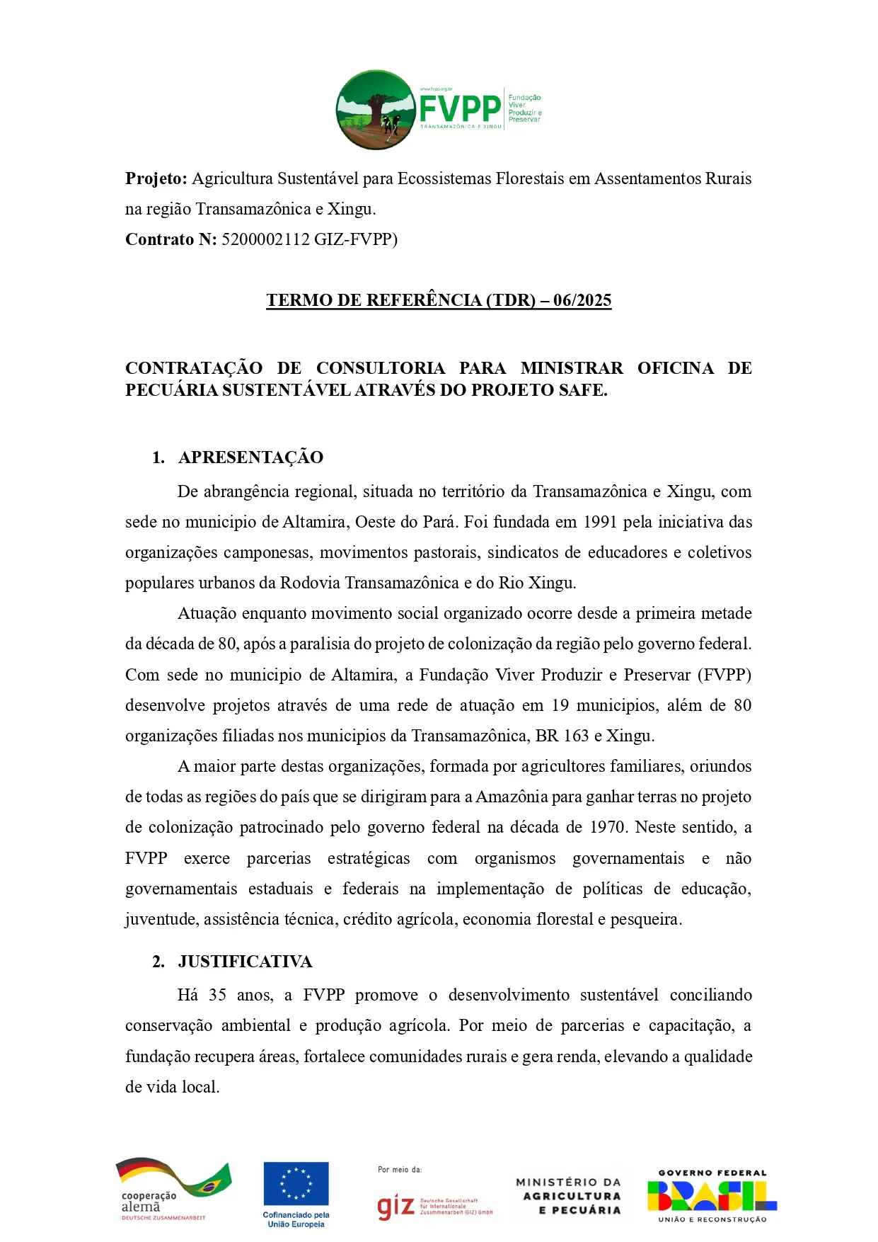 Rua Anchieta, 2092 – Sudam I – CEP. 68372-272-Altamira-Pará E-mail: fvppaltamira2021@gmail.com TDR-PROJETO 378-2024...