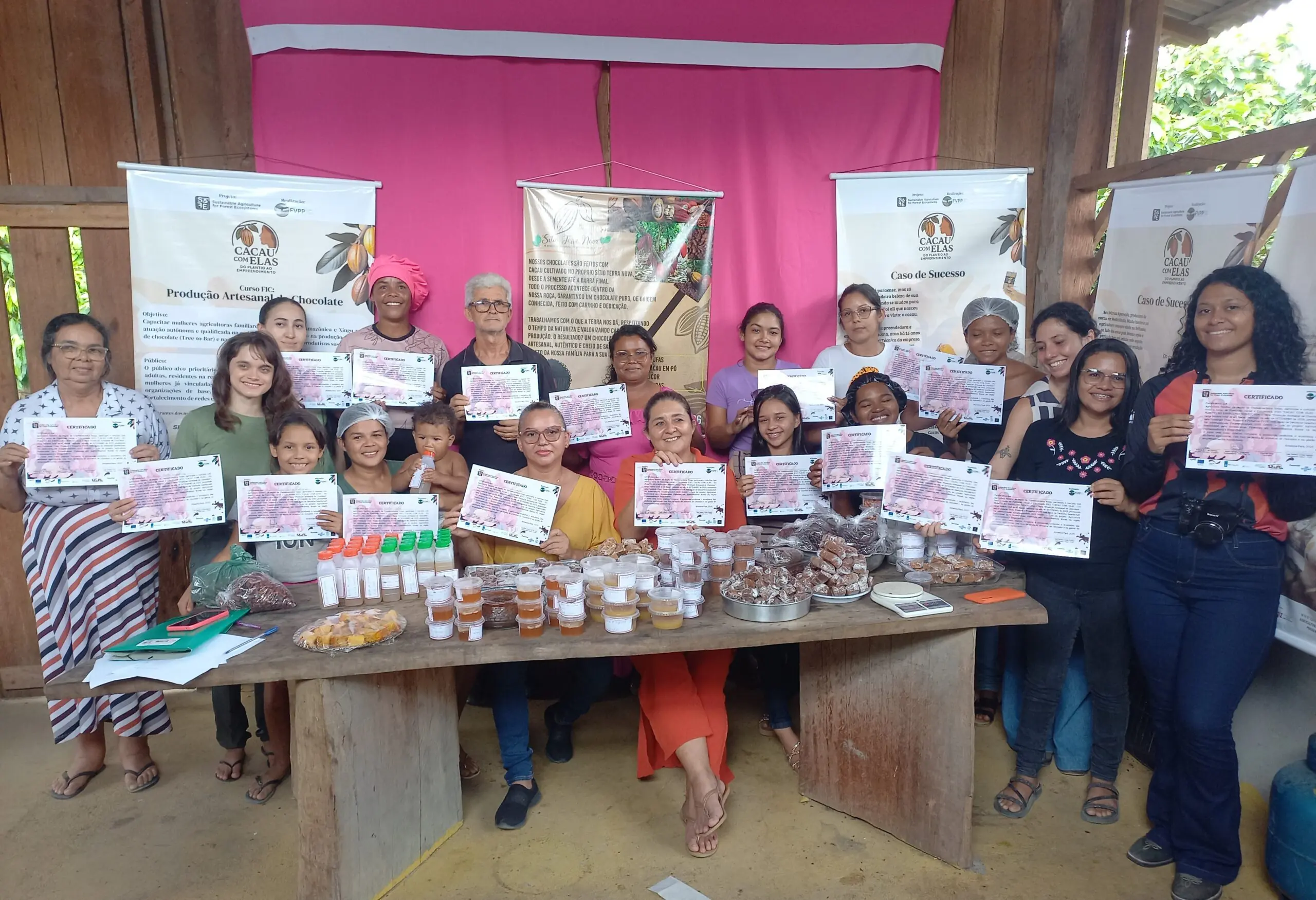 Entre os dias 08 e 12 de setembro de 2025, no Travessão da Firma, no PA Lajes, em Senador José Porfírio – PA, foi realizado o curso FIC (Formação Inicial e Continuada), “Cacau com Elas: do Plantio ao Empreendimento”, uma iniciativa com enfoque em gênero na cadeia do cacau. O curso surgiu da necessidade de fortalecer a participação das mulheres rurais na cadeia do cacau, oferecendo conhecimentos que vão desde a produção agrícola até a transformação do cacau em chocolate e a gestão do próprio negócio.