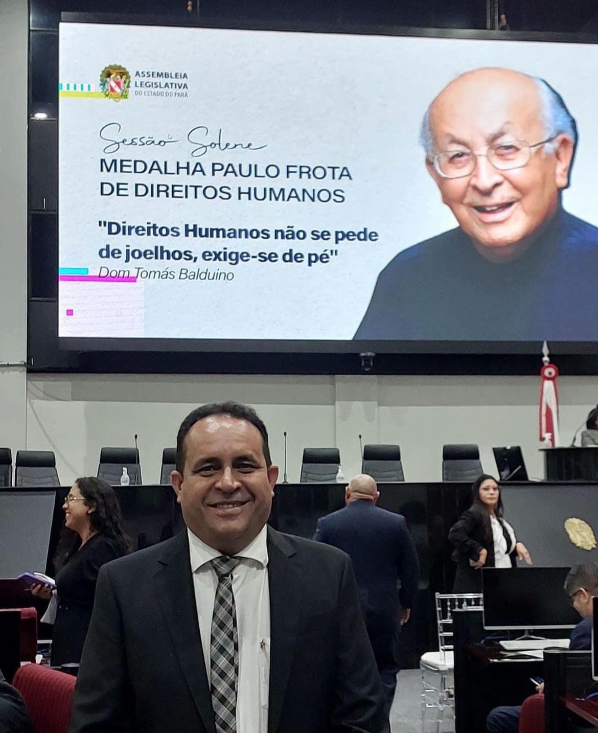 O presidente da cerimônia solene foi o Deputado Estadual Carlos Bordalo (PT-PA) e a indicação da FVPP foi feita pelo Deputado Estadual Dirceu Ten Caten (PT-PA) e nos somamos a um conjunto de lideranças representativas de diversas instituições e segmentos que estavam ali para receber a referida comenda. “Em nome da FVPP quero agradecer imensamente pela oportunidade de fazer parte desse coletivo que é o movimento social organizado da Transamazônica Xingu, representado por diversas instituições, as quais dedico essa comenda; dedicação esta que estendo também a todos os companheiros e companheiras que lutam por uma sociedade mais justa, mais fraterna e pela inclusão social, principalmente daqueles que estão na situação de vulnerabilidade social; assim como, aos extrativistas, pescadores, agricultores familiares e todas as pessoas que estão nas periferias das cidades e que fazem parte da nossa jornada de luta por um desenvolvimento inclusivo para todos e todas”, disse João Batista.