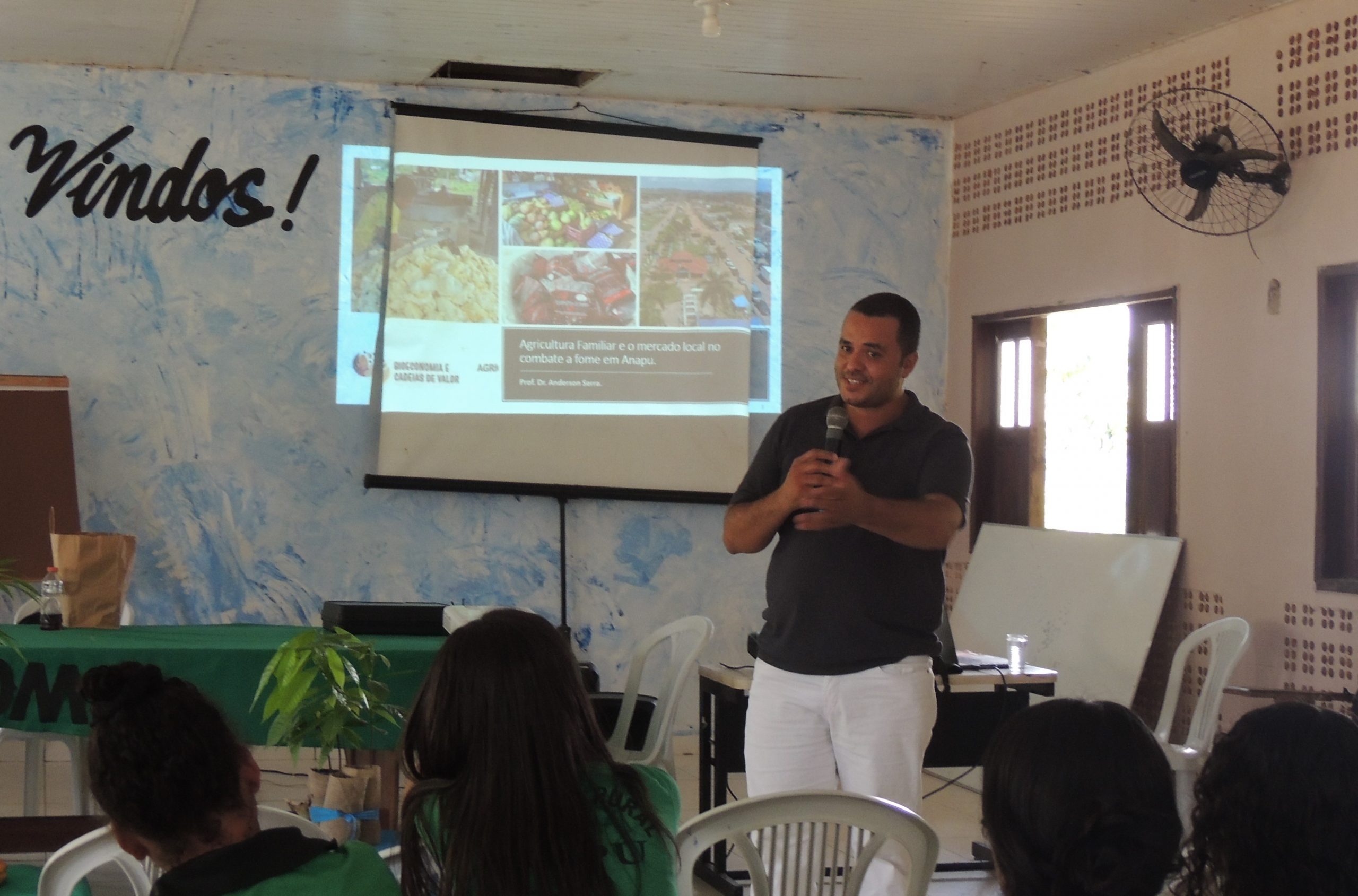 Em seguida o professor Anderson Serra da UFPA fez uma palestra sobre a produção de alimentos na Transamazônica, a partir das pesquisas realizadas pelo projeto Pró-bioeconomia da FVPP, dados do IBGE, mercados institucionais, PNAE, PAA, destacando o que se produz, quem acessa esses mercados, tratou da presença da agricultura familiar nas feiras e outros espaços.